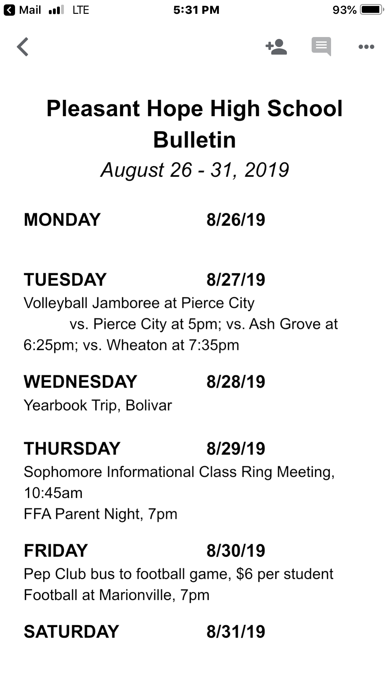 High School Bulletin Aug. 26-30